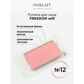 Румяна для лица Inglot №12 системы Freedom с шелковистой, гладкой, пудровой формулой. Румяна инглот удобны в применении, прекрасно сочетаются с другими косметическими средствами, создают эффект естественного финиша на лице.