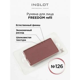 Румяна для лица Inglot № 126 системы Freedom с шелковистой, гладкой, пудровой формулой. Румяна инглот удобны в применении, прекрасно сочетаются с другими косметическими средствами, создают эффект естественного финиша на лице.