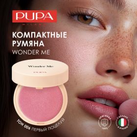 НАЙТИ ВЫГОДНЕЕ - PUPA Румяна для лица компактные сияющие WONDER ME BLUSH тон 006 Первый поцелуй