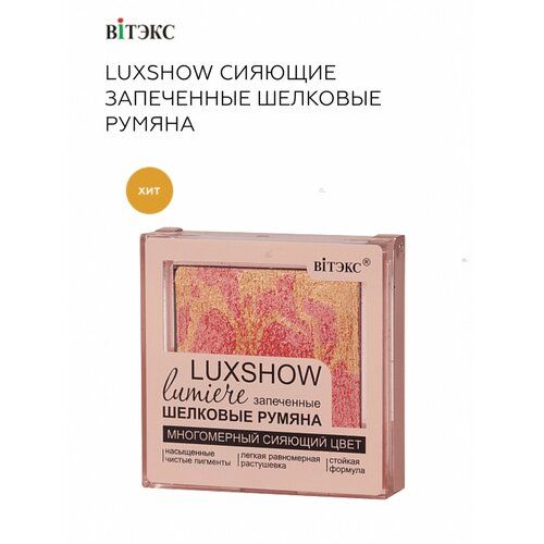 Сияющие запеченные шелковые румяна LUXSHOW Тон 06 золотисто-персиковые от Витэкс - это многофункциональное средство для макияжа, которое сочетает в себе свойства румян и хайлайтера.