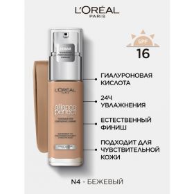 НАЙТИ ВЫГОДНЕЕ - L'Oreal Paris, Тональный крем ALLIANCE PERFECT СОВЕРШЕННОЕ СЛИЯНИЕ обогащенный гиалуроновой кислотой, тон 4.N, SPF 16, 30 мл