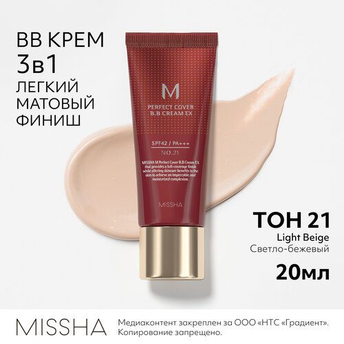 НАЙТИ ВЫГОДНЕЕ - Тональный BB крем MISSHA М Perfect Cover Идеальное покрытие SPF42/PA+++ тон 21, 20 мл