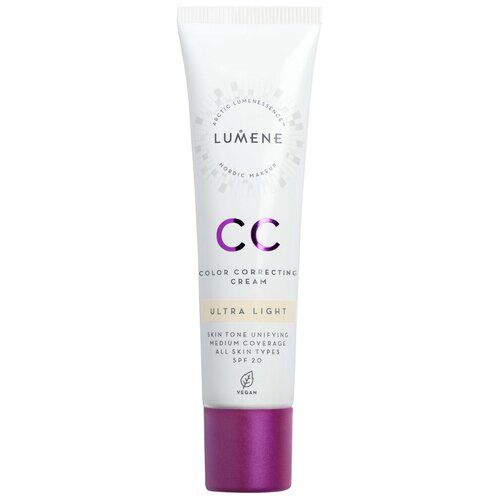 CC крем Lumene с SPF20+ Ultra Light обладает воздушной легкой текстурой, ложится на лицо равномерным слоем, подстраивается под естественный тон кожи. Тональный крем не забивает поры, не заметен на лице не провоцирует воспаления, скрывает пигментные пятна. Подходит для всех типов кожи (жирной, сухой, комбинированной, нормальной). Тональный крем для лица обеспечивает защиту от солнца благодаря SPF20. CC крем универсальное тональное средство по уходу за кожей с бежевым оттенком, обладает легкой кремовой текстурой не сушит кожу и дарит ей ощущение комфорта, отлично наносится и распределяется. СС крем для лица включает брусничный экстракт и кристально чистую воду из Арктики, а также гиалуроновую кислоту и не требует нанесения питательного крема для лица. Тональник стойко держится весь день. CC cream идеально подходит для всех типов кожи(сухая, жирная, нормальная, проблемная). Тоналка для лица придает лицу здоровый и ровный оттенок, не скатывается даже при жаркой погоде.