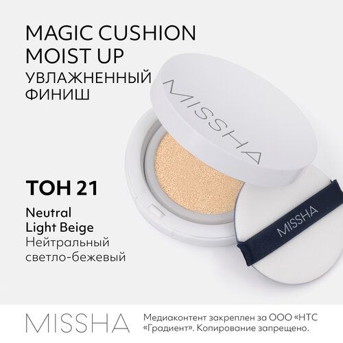 Тональная основа-кушон MISSHA – компактное стойкое тональное средство, которое всегда с собой. Кушон – это содержащий тональное средство спонж, который обеспечивает равномерное нанесение и экономичное дозирование косметического средства. Идеально подходит для коррекции макияжа в течение дня и легко поместится даже в маленькой сумочке. Благодаря тающей шелковистой текстуре тональное средство ложится на кожу тонкой вуалью, эффективно перекрывая тёмные круги под глазами, покраснения, пигментные пятна и следы от прыщей. Не создаёт ощущения маски, не закупоривает поры и не забивается в складки кожи. Может использоваться в качестве консилера.