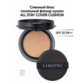 НАЙТИ ВЫГОДНЕЕ - Limoni Тональный флюид All Stay Cover Cushion PA++ Refill, SPF 35, 15 мл/15 г, оттенок: 01 light, 1 шт.