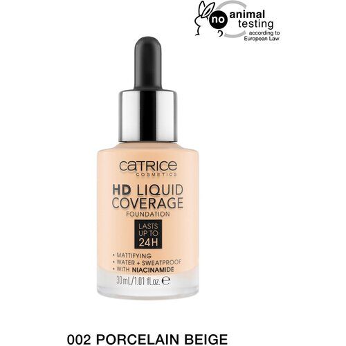 НАЙТИ ВЫГОДНЕЕ - CATRICE Тональная эмульсия HD Liquid Coverage Foundation, 30 мл/130 г, оттенок: 002 Porcelain Beige, 1 шт.