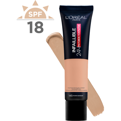 НАЙТИ ВЫГОДНЕЕ - L'Oreal Paris Тональный крем Infaillible 24 часа матовое покрытие, SPF 25, 30 мл/42 г, оттенок: 145 розово-бежевый, 1 шт.