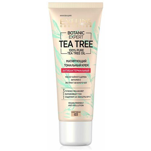 НАЙТИ ВЫГОДНЕЕ - Eveline Cosmetics Тональный крем Botanic Expert Tea Tree, SPF 10, 30 мл/30 г, оттенок: 03 light beige, 1 шт.