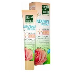 Восхищайте ровным и сияющим тоном лица с кремом 10 в 1 Идеальная кожа от бренда Чистая Линия. Его невесомая текстура со светоотражающими частицами мгновенно преображает кожу. Средство ровно ложится, не создавая эффект маски. Экстракт розы увлажняет и улучшает цвет лица. Растительные и минеральные пигменты выравнивают тон и матируют. Всего один продукт, который векторно воздействует на кожу:- Увлажняет и питает на 24 часа.- Скрывает несовершенства.- Матирует кожу на весь день.- Придает сияние и отдохнувший вид.- Делает поры менее заметными.- Создает безупречное покрытие на 12 часов.- Защищает от UV-лучей благодаря SPF 10.- Подстраивается под любой тип и тон кожи.- Препятствует негативному влиянию окружающей среды. Свойство продукта подтверждены в ходе потребительского тестирования2. Так, 93% респондентов отметили, что крем идеально подстраивается под тон кожи и мгновенно выравнивает тон; 97% – скрывает несовершенства без эффекта маски и границ нанесения, не подчеркивает шелушение; 99% – при нанесении крем не скатывается на коже, ровно ложится, не забивает поры, мгновенно делает их менее заметными. ВВ-крем рекомендован и одобрен дерматологами. Ухаживайте за кожей вместе с серией Идеальная кожа от бренда Чистая Линия и результат не заставит долго себя ждать. Начните с очищения гелем для умывания, далее нанесите тоник и крем по типу кожи. Для дополнительного ухода не забывайте использовать маски 1-2 раза в неделю. каротиноиды, входящие в состав экстракта облепихи. Свойства подтверждены потребительским тестированием при участии 100 девушек, min 84% согласившихся, РФ, 2016. Способ применения: Наносите крем на сухую кожу лица после умывания или использования лосьона, равномерно распределяя. Наносить обычный дневной крем не нужно.
