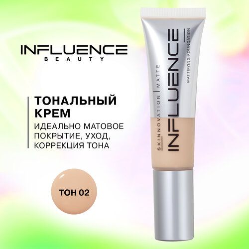 НАЙТИ ВЫГОДНЕЕ - Influence Beauty тональная основа Skinnovation I Matte матирующая, корректирующая, с витаминами Е, С и А, 25мл, 25 мл/25 г, оттенок: 02 светло-бежевый, 1 шт.