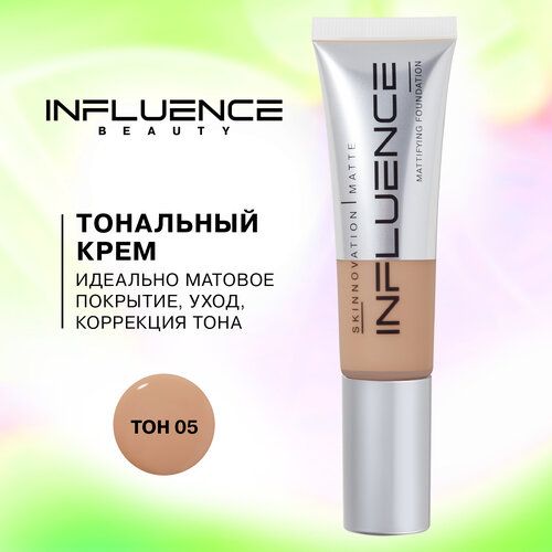 НАЙТИ ВЫГОДНЕЕ - Influence Beauty тональная основа Skinnovation I Matte матирующая, корректирующая, с витаминами Е, С и А, 25мл, 25 мл/25 г, оттенок: 05 темный темно-бежевый, 1 шт.