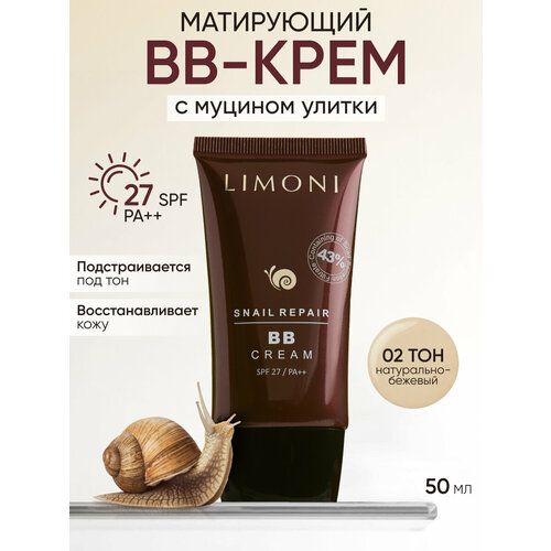 НАЙТИ ВЫГОДНЕЕ - Limoni Snail Repair BB Cream, SPF 27, 50 мл/60 г, оттенок: 002, 1 шт.
