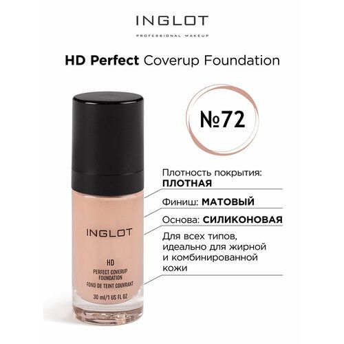 НАЙТИ ВЫГОДНЕЕ - Inglot Тональный крем Тональная основа HD Perfect Coverup Foundation, 30 мл/70 г, оттенок: 72 розоватый беж, холодный, 1 шт.
