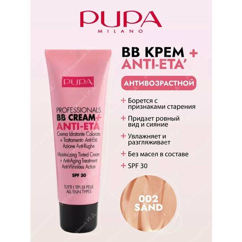 НАЙТИ ВЫГОДНЕЕ - Крем тональный PUPA BB 002, SPF 30, песочный, антивозрастной, Италия