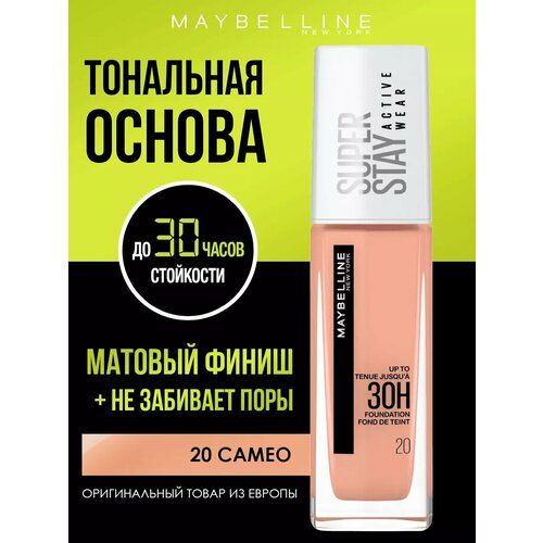 Maybelline New York представляет тональный крем Super Stay Active Wear 30h №20 Cameo - незаменимый помощник в создании безупречного макияжа.