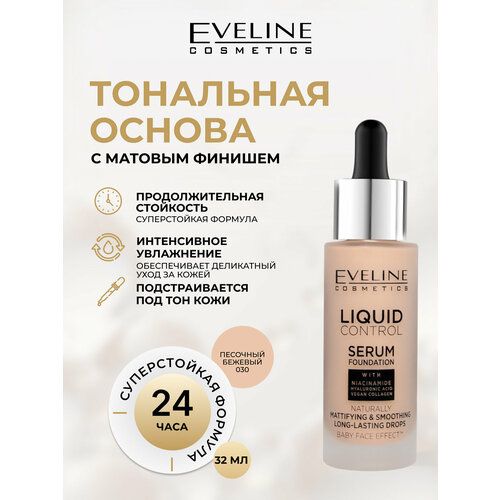 НАЙТИ ВЫГОДНЕЕ - EVELINE Инновационная жидкая тональная основа LIQUID CONTROL №030 - SAND BEIGE, 32мл