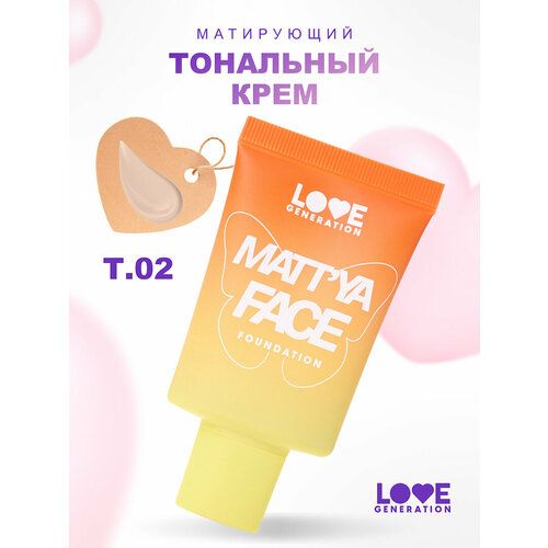 НАЙТИ ВЫГОДНЕЕ - Тональный крем Love Generation матирующий Matt'ya Faceс экстрактом матчи, тон 02 светлый бежевый