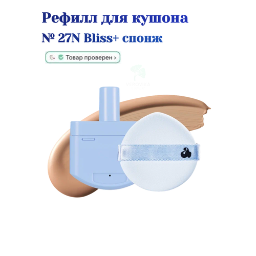НАЙТИ ВЫГОДНЕЕ - Рефилл для кушона 27N Bliss + спонж с матовым финишем Unleashia Babe Skin Baby Blue Cushion SPF40 PA++