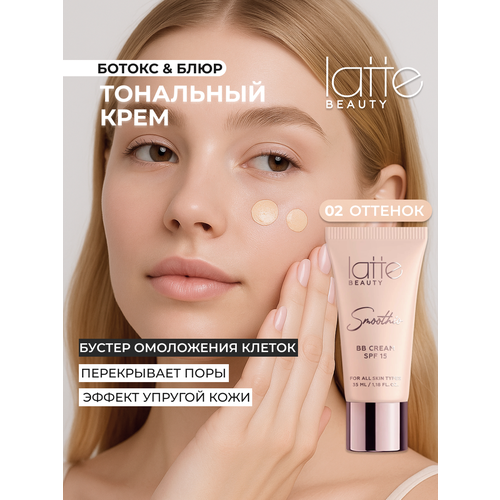 НАЙТИ ВЫГОДНЕЕ - BB-крем для лица Latte Beauty 02 Бежевый тональный крем с SPF 15, увлажняющий, матирующий, эффект фотошопа