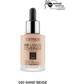 НАЙТИ ВЫГОДНЕЕ - CATRICE Тональная эмульсия HD Liquid Coverage Foundation, 30 мл/130 г, оттенок: 030 Sand Beige, 1 шт.