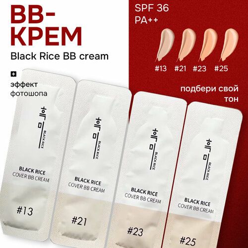 НАЙТИ ВЫГОДНЕЕ - ВВ крем для лица с экстрактом чёрного риса, эффект фотошопа пробники тон 13, 21, 23, 25, SPF 36 PA++