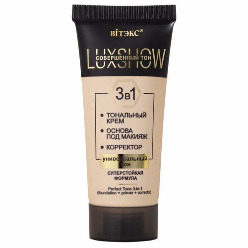 универсальный тон Все лучшее, что Вы ищете в тонирующих средствах для лица, мы объединили в уникальном тональном креме 3в1 красивый равномерный тон держится весь день, поэтому Вам не потребуется обновлять и поправлять макияж до самого вечера. Отличная устойчивость даже в условиях высокой влажности. Суперуниверсальность 3в1: тональный крем делает цвет лица идеально ровным, красивым и ухоженным основа под макияж выравнивает кожу и продлевает стойкость макияжа корректор надежно маскирует пигментацию, темные круги и другие несовершенства Легко и равномерно растушевывается и наслаивается, дарит совершенный цвет, которым может гордиться профессиональный визажист. Суперпокрытие: шелковистая формула безупречно сливается с тоном кожи, обеспечивая легкое, дышащее покрытие с невероятно красивым натуральным финишем. Цвет лица выглядит изумительно как перед камерой, так и в реальной жизни, что делает это тональным крем идеальным не только для фотосессии, видеосъемки и особых мероприятий, но и на каждый день. Суперадаптивность: специальная комбинация пигментов высочайшего качества адаптируется под оттенок кожи, идеально сливается с ним без эффекта маски, не подчеркивает шелушения, не забивается в поры и морщинки. Активные компоненты: коллаген для повышения упругости кожи, гиалурон для глубокого увлажнения, витамин Е для сохранения молодости.