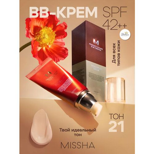 НАЙТИ ВЫГОДНЕЕ - Тональный крем Missha Perfect Cover BB Cream, SPF42, PA++, 50мл, тоналка Мisha
