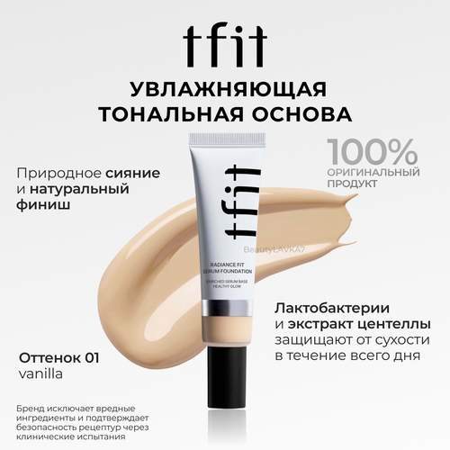 НАЙТИ ВЫГОДНЕЕ - Tfit Увлажняющая тональная основа с лактобактериями и экстрактом центеллы Radiance Fit Serum Foundation W01 Vanilla