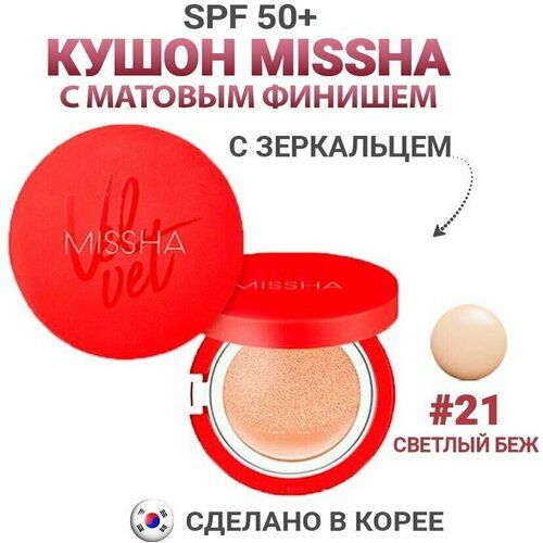 НАЙТИ ВЫГОДНЕЕ - Missha Тональный кушон Velvet Finish с SPF 50+ в оттенке №21