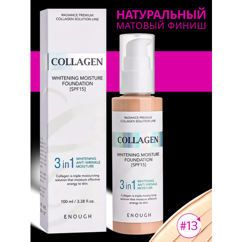 Тональный крем для лица 3 In 1 обладает легкой текстурой, насыщенной пигментом, за счет чего создается невесомое пигментированное покрытие, которое с легкостью маскирует любые несовершенства кожи, придавая лицу свежий, отдохнувший и сияющий вид. Коллагеновый тональный крем выравнивает рельеф кожи, маскируя расширенные поры, создает ровное, идеально гладкое и стойкое покрытие, не утяжеляя макияж, не создавая эффекта маски или пленки на лице, не провоцируя воспалительных процессов и закупорку пор.
