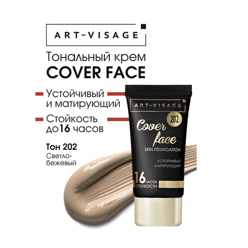НАЙТИ ВЫГОДНЕЕ - Матирующий тональный крем для лица | 202 светло-бежевый Art-Visage Cover Face Skin Foundation /25 мл/гр.