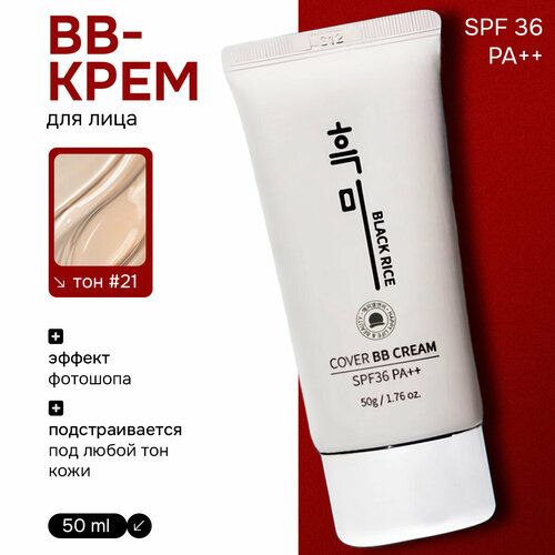 НАЙТИ ВЫГОДНЕЕ - ВВ крем для лица с экстрактом чёрного риса, эффект фотошопа, тон 21, SPF 36 PA++