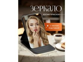 Зеркало карманное косметическое в черном чехле-подставке, размеры 7х10,5 см 4429816867