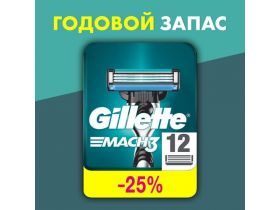GILLETTE Mach 3 Сменные кассеты для бритья с 3 лезвиями, мужские, 12 шт 100232275854