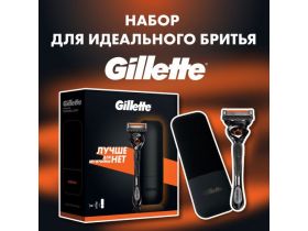 Набор Gillette бритвенный станок Fusion5 ProGlide со сменной кассетой, гель для бритья увлажняющий Gillette Series, синий/черный 630400334