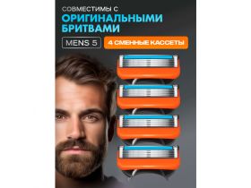Кассеты сменные Men's Max 5 для бритв совместимы с Gillette Fusion5 4 шт, 5 лезвий 101860695096
