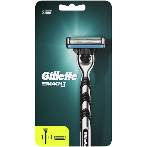Комплектация: многоразовый бритвенный станок для мужчин Gillette Mach3 1 шт, сменные кассеты с 3 лезвиями 2 шт. в упаковке.