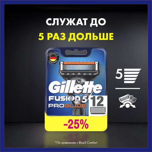 НАЙТИ ВЫГОДНЕЕ - GILLETTE Fusion 5 ProGlide Сменные кассеты для бритья с 5 лезвиями, мужские, 12 шт