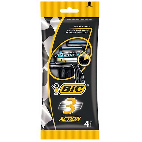 Бритва одноразовая, для мужчин, 3 Action, черный, 4 шт