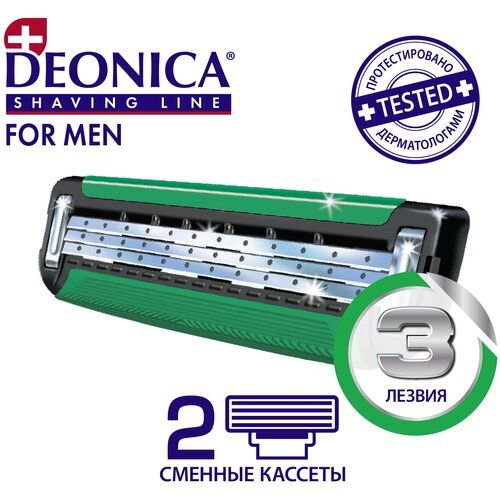 НАЙТИ ВЫГОДНЕЕ - Сменные кассеты Deonica 3 лезвия, зеленый, 2 шт.