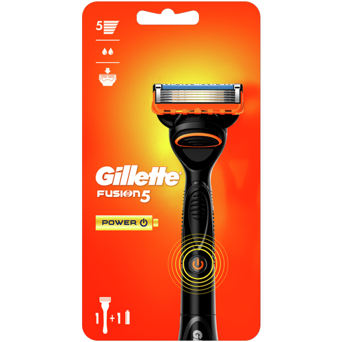 Мужская бритва Gillette Fusion5 Power в новом ярком дизайне с технологией микровибраций разглаживает кожу для совершенного бритья. 5 лезвий с уменьшающим трение покрытием обеспечивает бритье, которое вы едва почувствуете, а смягчающие микроимпульсы, возникающие при работе от батарейки, улучшают скольжение бритвы Power. Точный триммер на обратной стороне удобен для обработки труднодоступных мест, а также для ухода за бородой и усами. Смазывающая полоска-индикатор поблекнет, когда бритва перестанет обеспечивать оптимальный результат бритья. В наборах бритв одной сменной кассеты хватает на один месяц бритья. К мужской бритве Fusion5 Power подходят все сменные кассеты Fusion5. Бритвы Gillette, которые раньше назывались Fusion Power. Features and Benefits. Мужские бритвы Gillette с 5 лезвиями с покрытием, уменьшающим трение; бритье, которое вы едва почувствуете. Бритва ProGlide Power с питанием от батарейки посылает смягчающие микроимпульсы, обеспечивающие лучшее скольжение бритвы. Точный триммер на обратной стороне прекрасно подходит для труднодоступных мест (бакенбард и участков кожи над верхней губой). Со смазывающей полоской-индикатором, которая поблекнет, когда бритва перестанет обеспечивать оптимальный результат бритья. 1 сменной кассеты хватает на месяц бритья. Подходят все сменные кассеты Fusion5 и Fusion5 Power