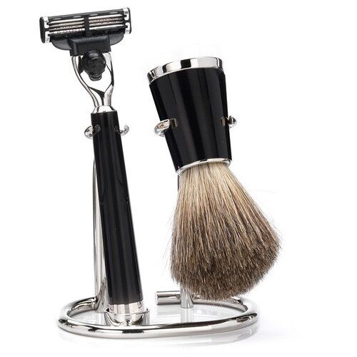 Бритвенный набор Mondial: станок, помазок, подставка; черная смола