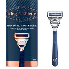 НАЙТИ ВЫГОДНЕЕ - Многоразовый бритвенный станок Gillette King C для чувствительных участков, синий