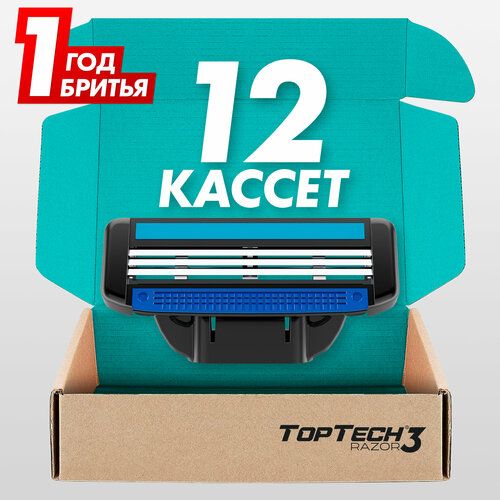 НАЙТИ ВЫГОДНЕЕ - Сменные кассеты TopTech Razor 3 для бритья. Совместимы с Gillette Mach3. 12шт.