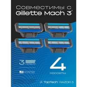 НАЙТИ ВЫГОДНЕЕ - Сменные кассеты для бритья TopTech Razor 3. Совместимы с Gillette Mach3. 4шт.
