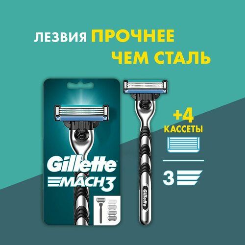 НАЙТИ ВЫГОДНЕЕ - Бритвенный станок Gillette Mach3 + 4 сменные кассеты Mach3