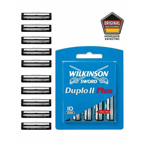 - Набор содержит пластиковый контейнер с 10-ю сменными кассетами Wilkinson Sword Duplo 2 Plus.