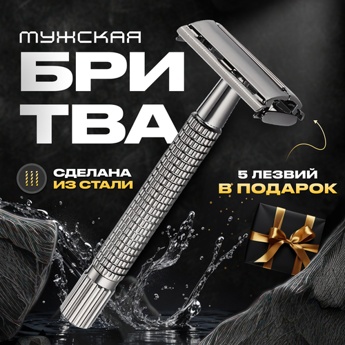НАЙТИ ВЫГОДНЕЕ - Т-образный станок для бритья с головкой типа бабочка с комплектом лезвий (5шт)