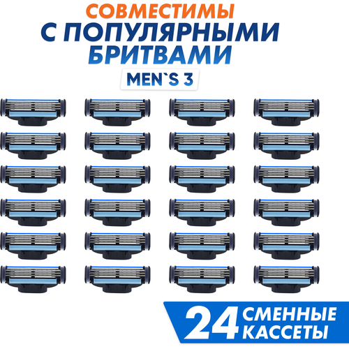 НАЙТИ ВЫГОДНЕЕ - Сменные кассеты Men's Mac 3 для бритья мужские совместимы с Gillette Mach 3, 24 шт по 3 лезвия