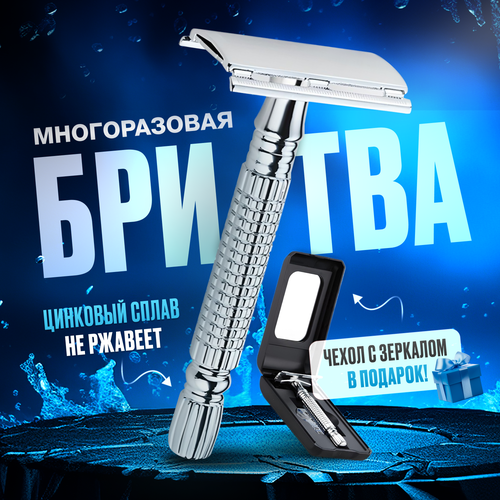 Бритва выполнена из качественного цинкового сплава, который обеспечивает долговечность и защиту от коррозии. Ручка бритвы имеет эргономичную форму, что обеспечивает безопасное и чистое бритье.
